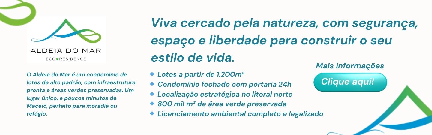 Você está em busca de lotes em condomínio fechado com infraestrutura pronta, segurança jurídica e contato direto com a natureza? Conheça o Aldeia do Mar, um empreendimento único em Maceió que une exclusividade, sustentabilidade e alto padrão urbanístico em um só lugar.