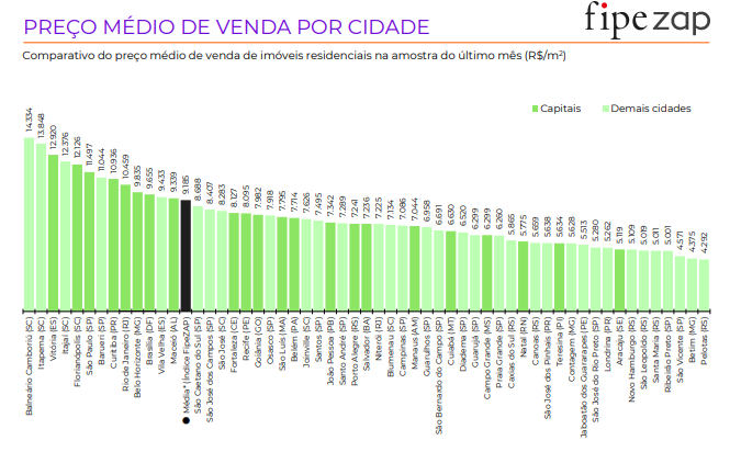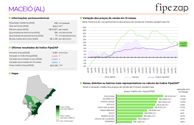 O valor do metro quadrado em Maceió tem subido consistentemente nos últimos anos. Em janeiro de 2025, o preço médio alcançou impressionantes R$ 9.173 por m², consolidando a cidade como a capital com o metro quadrado mais caro do Nordeste, à frente de Salvador e João Pessoa.